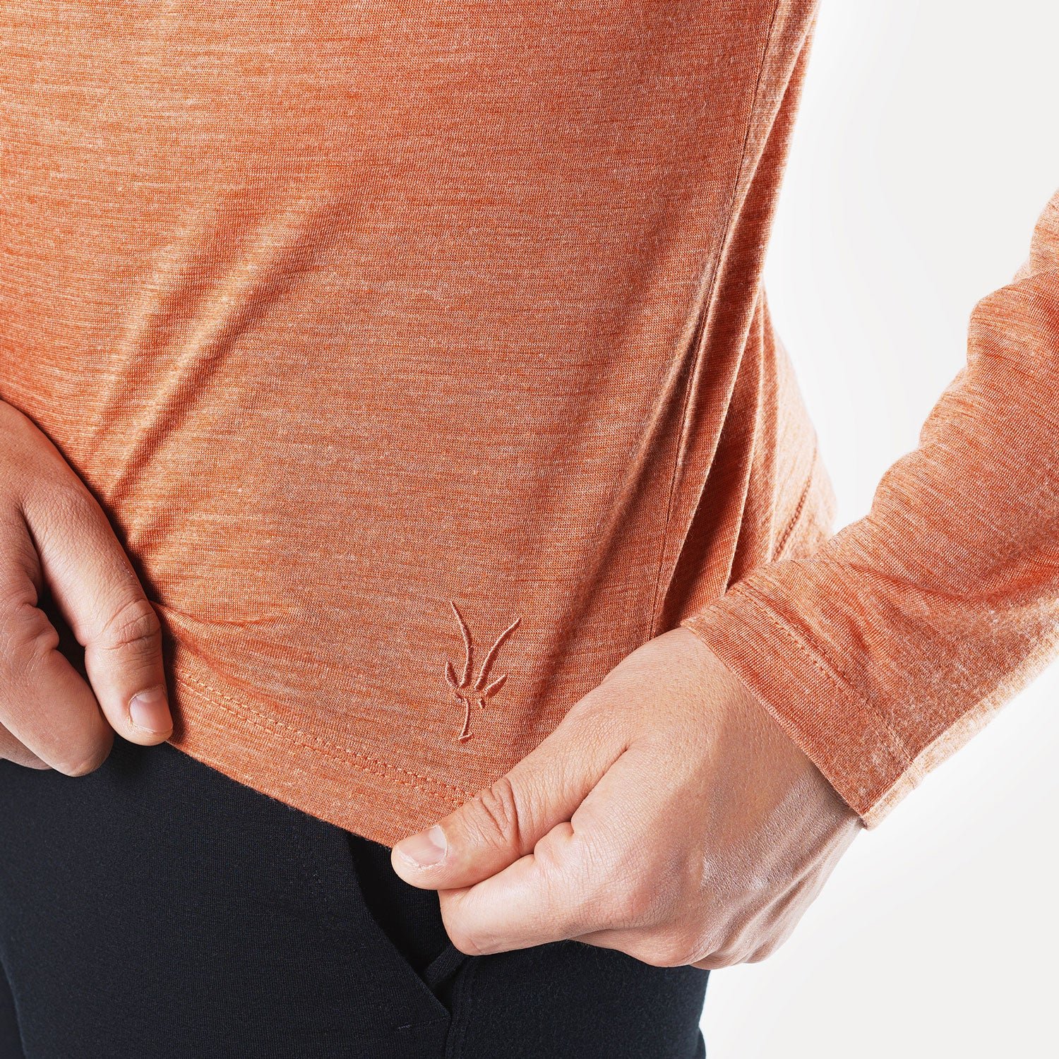 This fabric blends merino with the natural cooling properties of Tencel™, a fiber derived from sustainably grown eucalyptus. We use Corespun technology to wrap those fibers around a nylon filament for additional tensile strength. This hybrid excels in hot and humid weather to keep you feeling cool and dry when the mercury rises.